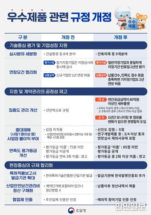 한민일보 서울포커스 임철현 기자 | 조달청은 기업의 성장을 지원하고, 공정한 경쟁환경을 조성하기 위해 우수조달물품 관련 규정을 개정하여 4월 27일부터 시행한다고 밝혔다.