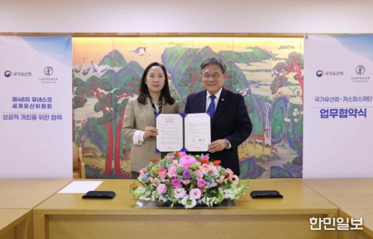 한민일보 서울포커스 박용남 기자 | 국가유산청은 저스피스재단과 4월 24일 오후 2시 국립고궁박물관(서울 종로구)에서 제48차 유네스코 세계유산위원회 회의(48th Session of the World Heritage Committee)의 성공적 개최를 위한 업무협약을 체결했다.
