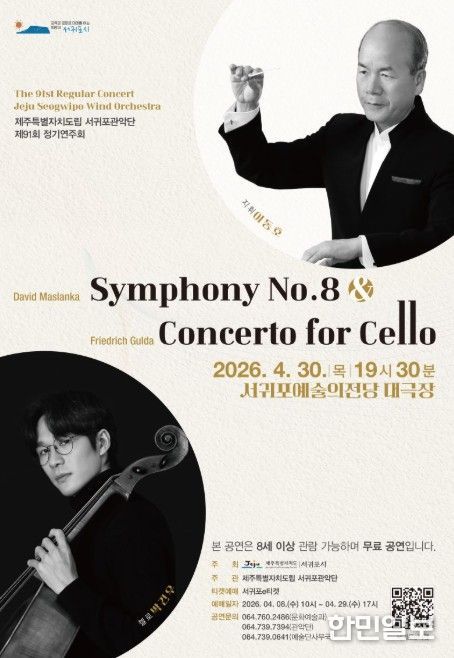 한민일보 서울포커스 김다남 기자 | 서귀포시는 4월 30일 19시 30분 서귀포예술의전당 대극장에서 ‘제주특별자치도립 서귀포관악단 제91회 정기연주회’를 개최한다.