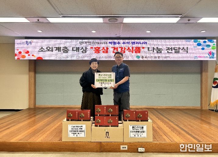 한민일보 서울포커스 김다남 기자 | 충주시자원봉사센터(센터장 심영자)는 27일 충주시청 10층 중회의실에서 현대엘리베이터 박철수 수석 엔지니어(57세)가 지난해에 이어 두 번째 지역사회 나눔 실천을 위해 홍삼 건강식품 50박스(375만원 상당)를 기탁했다고 밝혔다.