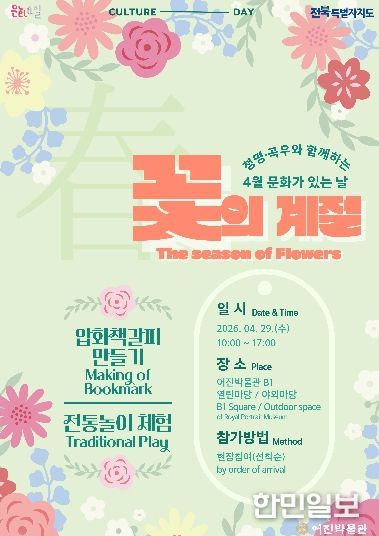 한민일보 서울포커스 김용택 기자 | 전주시 어진박물관은 오는 29일 4월 ‘문화가 있는 날’을 맞아 ‘꽃의 계절’을 주제로 한 체험프로그램을 운영한다고 27일 밝혔다.