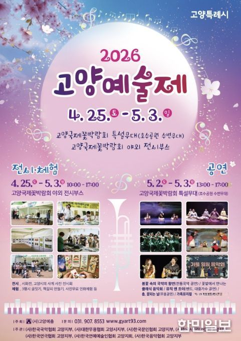 한민일보 서울포커스 김은금 기자 | 고양특례시의 봄을 수놓는 지역 예술 축제 ‘2026 고양예술제’가 오는 5월 3일까지 고양국제꽃박람회 특설무대와 야외 전시부스에서 개최된다.