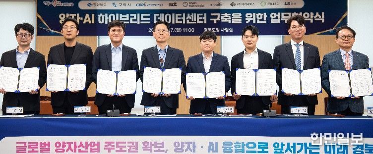 구미시는 4월 27일 경북도청에서 경상북도, ㈜SDT, 구미전자정보기술원, 모빌린트, Anyon Technologies, ㈜마키나락스, ㈜I-ESG, LS증권 등 기술·투자·행정 분야 9개 핵심 기관과 '양자·AI 하이브리드 데이터센터 구축을 위한 업무협약(MOU)'을 체결했다고 밝혔다.