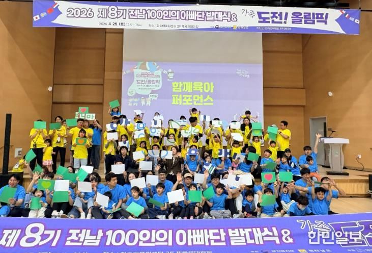 한민일보 서울포커스 박정민 기자 | 전라남도는 최근 화순 어울림센터체육관에서 ‘2026년 제8기 전남 100인의 아빠단 발대식 및 도전! 가족올림픽’을 열고, 아빠의 육아 참여 확대와 함께하는 돌봄 문화 확산을 다짐했다.