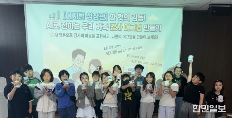 이번 프로그램은 초등학교 4~6학년 청소년 15명이 참여한 가운데 진행됐으며, 생성형 인공지능(AI)을 활용한 웹툰 제작과 머그컵 굿즈 제작을 결합한 체험형 활동으로 운영됐다.