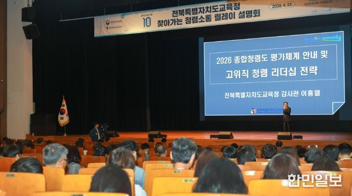 한민일보 서울포커스 임경복 기자 | 전북특별자치도교육청은 27일 전주학생교육문화관에서 ‘2026년 행동강령책임관 등 청렴교육’을 실시했다.