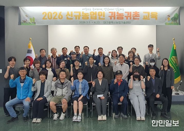 한민일보 서울포커스 김봉순 기자 | 대구광역시 농업기술센터는 지난 3월 5일부터 4월 23일까지 8주간 운영한 ‘2026년 신규농업인(귀농·귀촌) 기초영농기술교육 1기’ 과정을 성공적으로 마치고 수료식을 개최했다.
