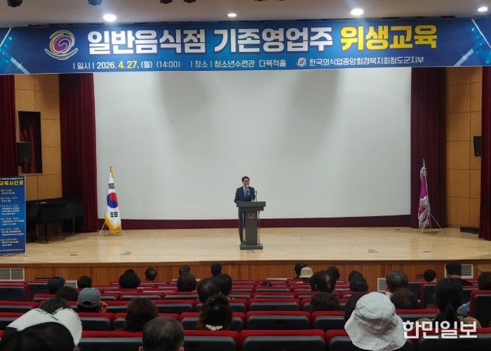 한민일보 서울포커스 임경복 기자 | 청도군은 27일 청소년수련관 다목적홀에서 2026년도 일반음식점 기존 영업주 위생교육을 실시했다.