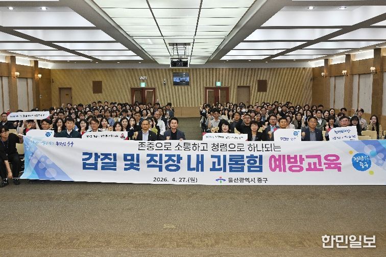 한민일보 서울포커스 기자 | 울산 중구가 4월 27일 오후 2시 중구청 대회의실에서 직원들을 대상으로 ‘2026년 갑질 및 직장 내 괴롭힘 예방교육’을 실시했다.