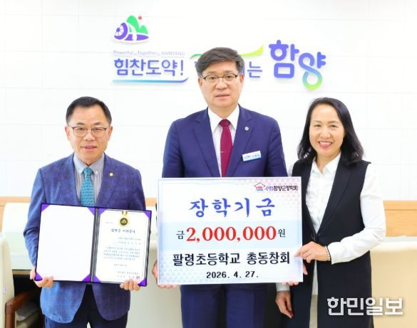 한민일보 서울포커스 김서윤 기자 | (재)함양군장학회는 4월 27일 팔령초등학교 총동창회(회장 박갑열)가 지역 인재 육성을 위한 장학금 200만 원을 기탁했다고 밝혔다.