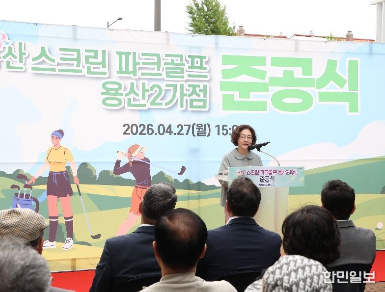 한민일보 서울포커스 김서윤 기자 | 서울 용산구는 27일 ‘용산 스크린 파크골프 용산2가점’ 준공 기념행사를 열었다고 밝혔다. 이날 행사는 축사, 테이프 절단식, 시타 순으로 진행됐다.