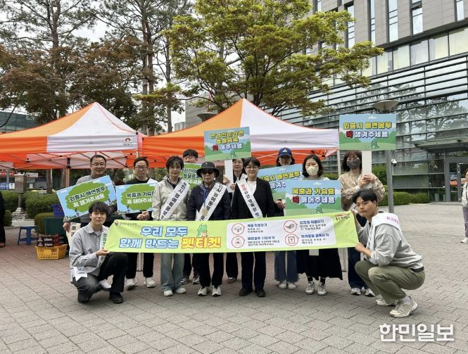 한민일보 서울포커스 김성윤 기자 | 용인특례시 수지구는 27일 성숙한 반려동물 문화 조성을 위해 수지구청역 인근과 수지구청 광장에서 ‘반려동물 펫티켓’ 캠페인을 실시했다고 28일 밝혔다.