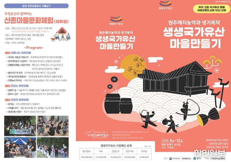 한민일보 서울포커스 임경복 기자 | 원주시역사박물관은 원주매지농악보존회와 ‘원주매지농악과 생기복덕 생생 국가유산 마을 만들기’ 사업을 운영한다.