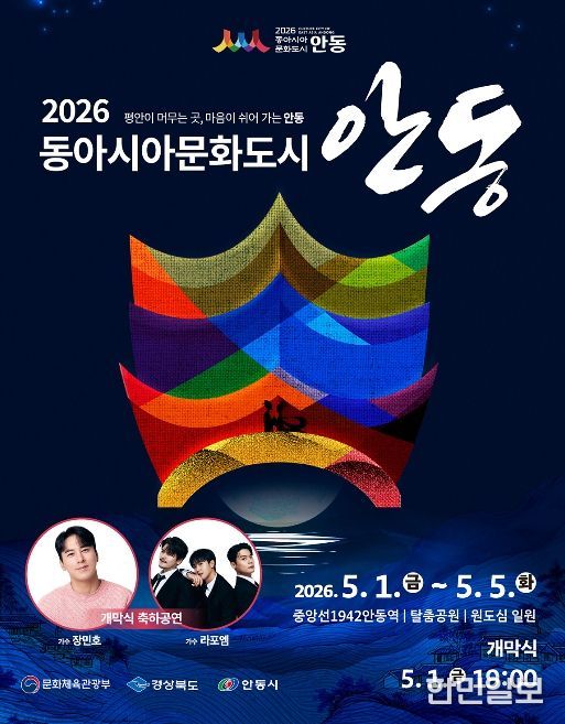 한민일보 서울포커스 김봉순 기자 | 안동시는 오는 5월 1일부터 5일까지 탈춤공원과 중앙선1942안동역 일원에서 ‘2026 동아시아문화도시 안동’ 행사를 개최한다.