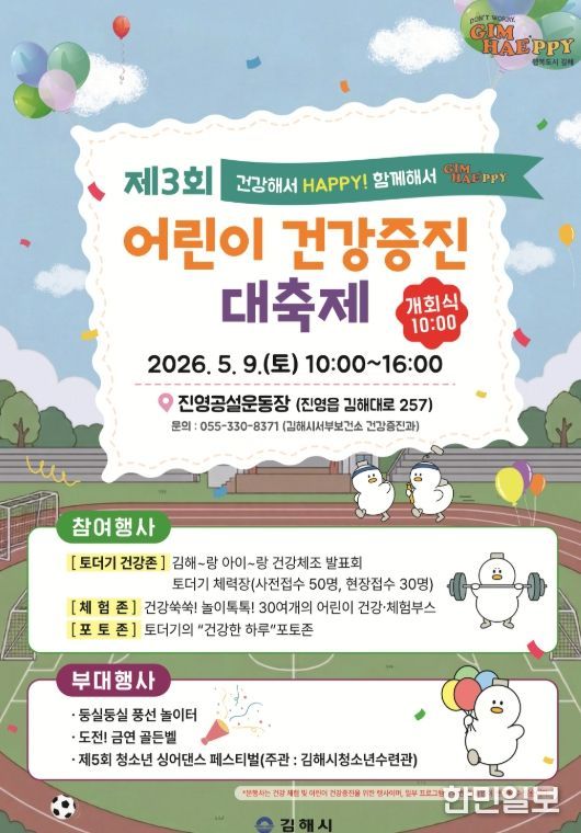 올해는 ‘건강해서 HAPPY! 함께해서 GIMHAEPPY’라는 슬로건 아래, 어린이들이 놀이와 체험을 통해 올바른 건강 습관을 형성하고 온 가족이 함께 추억을 쌓을 수 있는 다채로운 프로그램을 선보인다.