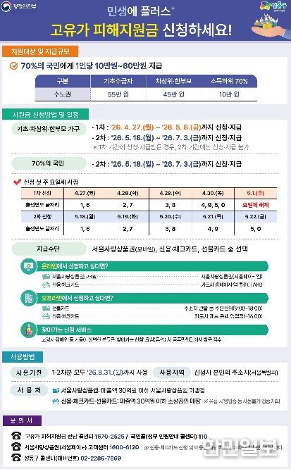 한민일보 서울포커스 임광현 기자 | 서울 성동구가 고유가와 물가 상승으로 늘어난 구민 생활 부담을 완화하고 지역 내 소비를 촉진하기 위한 ‘고유가 피해지원금’ 지급을 4월 27일부터 시작한다고 밝혔다.