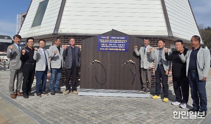 한민일보 서울포커스 임경복 기자 | 국제로타리3680지구 제9지역 서해로타리클럽은 지난 24일 서천군 서면 춘장대해수욕장 중앙광장에서 모래털이용 에어건 설치 기념행사를 개최했다.