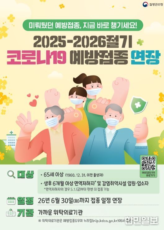 한민일보 서울포커스 황준형 기자 | 천안시는 여름철 코로나19 재유행에 대비해 고위험군 대상 2025-2026절기 예방접종 기간을 오는 6월 30일까지 연장한다고 28일 밝혔다.