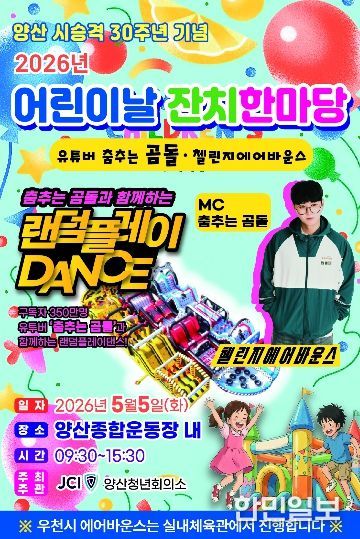 한민일보 서울포커스 김은금 기자 | 양산시는 5월 5일 9시 30분부터 15시 30분까지 양산종합운동장 주경기장에서 '2026년 어린이날 잔치 한마당' 행사가 개최된다고 밝혔다.