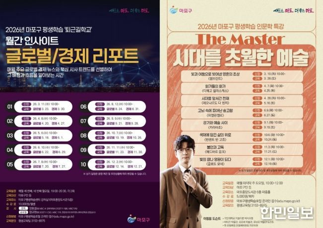 마포구 관계자는 “구민이 일상 속에서 쉽게 배움에 참여할 수 있도록 다양한 평생교육 프로그램을 운영하고 있다”라며, “구민 여러분의 많은 관심과 참여 속에 배움이 일상에서 자연스럽게 이어지길 바란다”고 말했다.