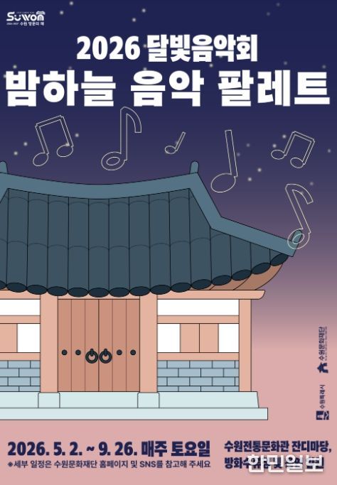 한민일보 서울포커스 진광성 기자 | 수원문화재단은 오는 5월부터 9월까지 국가유산과 자연, 음악이 어우러진 야간 공연 프로그램 '2026 달빛음악회 '밤하늘 음악 팔레트'’를 운영한다.