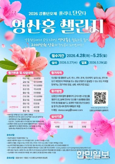 한민일보 서울포커스 임경복 기자 | (사)강릉단오제위원회가 오는 4월 28일부터 5월 25일까지 2026 강릉단오제 영산홍챌린지를 개최한다.