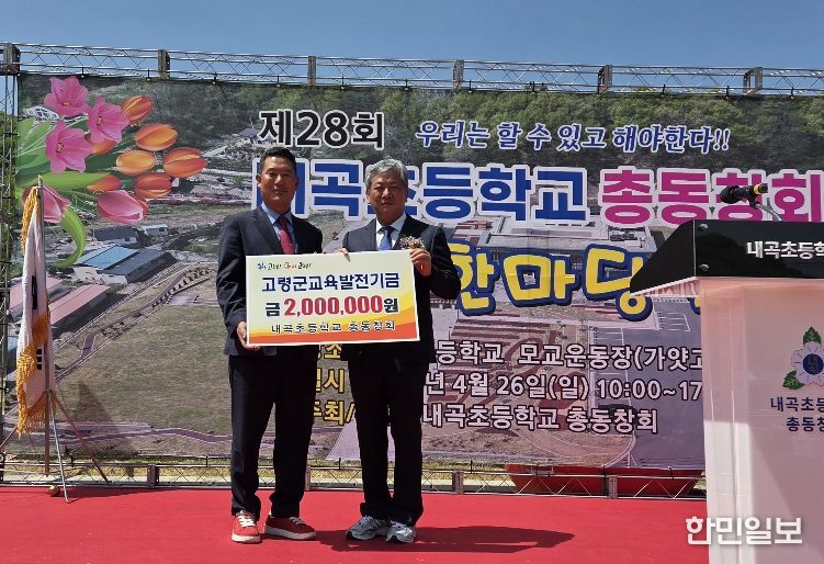 이날 내곡초등학교 총동창회 문수열 회장은 “우리 학생들이 행복해질 수 있는 기반이 됐으면 하는 마음으로 매년 기탁하고 있다.”며 “고령의 밝은 미래를 위해 학생들의 학업 환경 개선과 지역인재 육성을 위해 힘써 달라.”고 말했다.