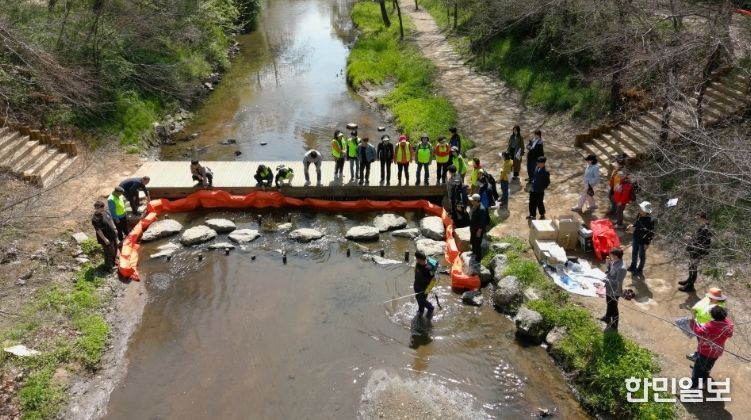 한민일보 서울포커스 김성혜 기자 | 인천 남동구는 최근 만수동 장수천 일원에서 수질오염사고 대응 역량 강화를 위한 유관기관 합동 방제 훈련을 실시했다고 28일 밝혔다.