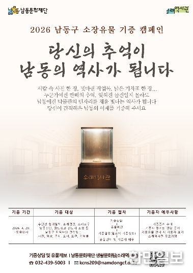 남동문화재단은 소래역사관을 중심으로 ‘2026 남동구 소장유물 기증 캠페인’을 오는 4월 20일부터 연중 상시 운영한다고 28일 밝혔다.