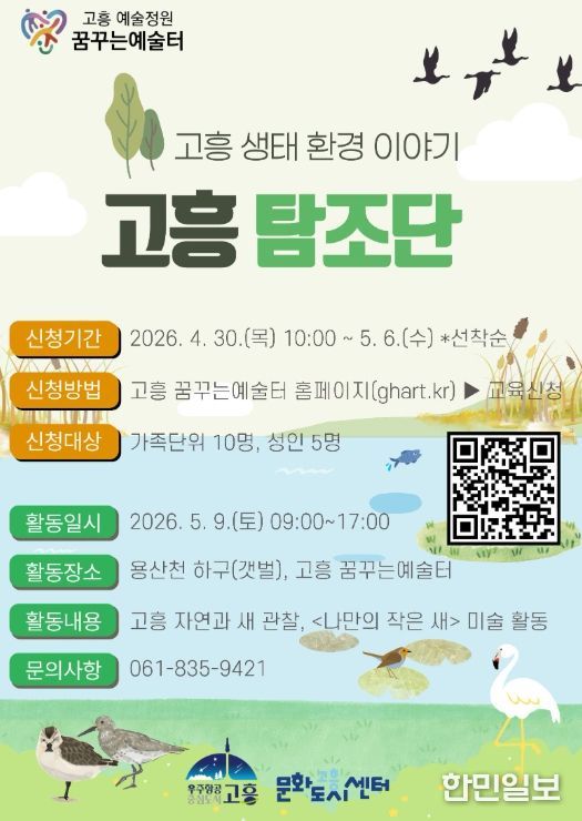 한민일보 서울포커스 임광현 기자 | 고흥군과 고흥군문화도시센터는 오는 5월 9일 세계 철새의 날을 맞아 ‘제2회 고흥 탐조단’ 프로그램 참가자를 모집한다고 밝혔다.