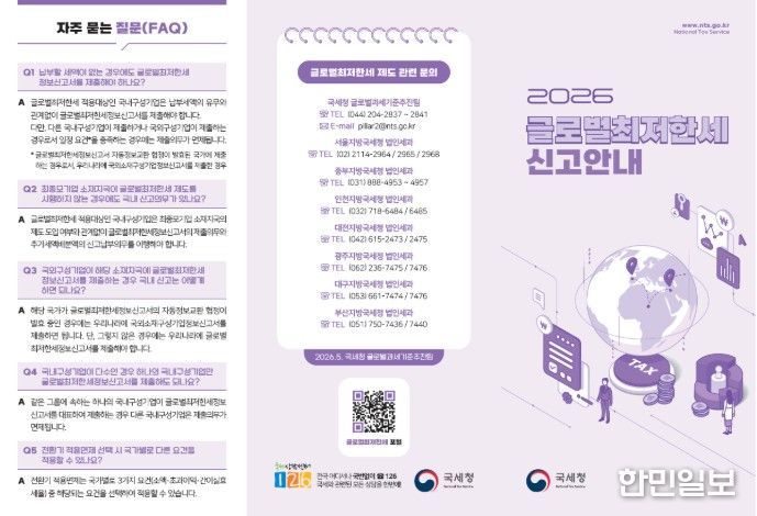 앞으로도 국세청은 기업의 성실신고를 적극적으로 지원함으로써 글로벌최저한세 제도가 안정적으로 정착될 수 있도록 지속적으로 노력할 계획이다.
