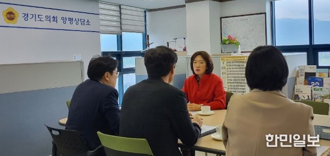 한민일보 서울포커스 진광성 기자 | 경기도의회 기획재정위원회 부위원장 이혜원 의원 (국민의힘, 양평 2) 은 27일 양평상담소에서 경기도청 기획담당관 관계자와 함께 '경기도 행정기구 및 정원조례 개정' 관련 업무보고를 받고, 국가지원 지방도 건설 사업 및 지방채 발행 관련한 주요 현안을 점검했다.