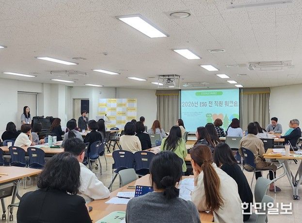 한민일보 서울포커스 유창렬 기자 | 인천여성가족재단은 4월 28일 재단 소강당에서 전 직원을 대상으로 ‘2026년 ESG 전 직원 워크숍’을 열고, ESG 경영 내재화와 성과 중심 실행체계 구축 방안을 논의했다.