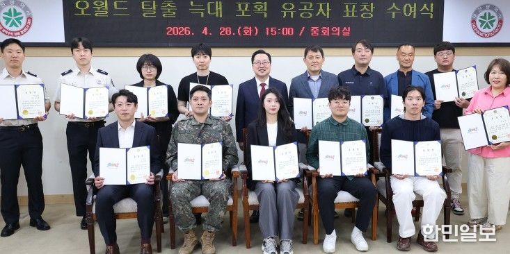 한민일보 서울포커스 김서윤 기자 | 대전시는 4월 28일 오후 3시 시청 중회의실에서 대전오월드를 탈출한 늑대‘늑구’를 생포하는데 기여한 민간 유공자와 공무원 등 총 15명에게 표창을 수여했다.