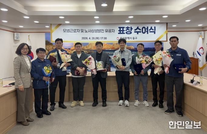 한민일보 서울포커스 기자 | 울산 동구는 4월 28일 오후 5시 30분 동구청 2층 상황실에서 모범 근로자 및 노사 상생발전 유공자 10명에게 표창을 수여했다.