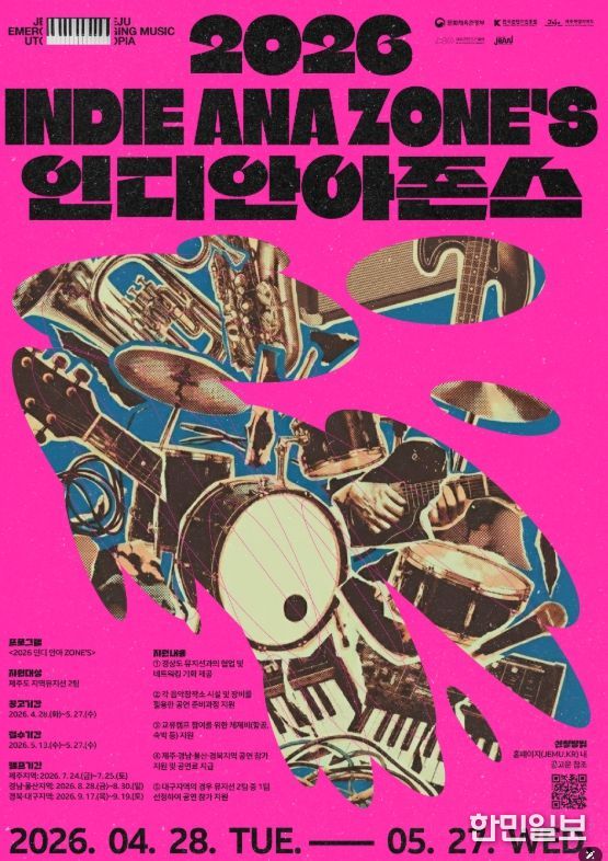 한민일보 서울포커스 임경복 기자 | 제주특별자치도와 (재)제주콘텐츠진흥원(원장 강민부)이 제주와 경상권 지역 뮤지션 간 협업과 교류 공연을 위한 프로젝트 '2026 인디 안아 Zone’s'참여뮤지션을 모집한다.