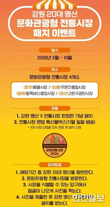 아울러 올해에는 문화관광형 전통시장인 △(춘천)풍물시장 △(강릉)주문진종합시장 △(동해)동쪽바다중앙시장 △(정선)고한구공탄시장에서 특별 이벤트를 진행한다.