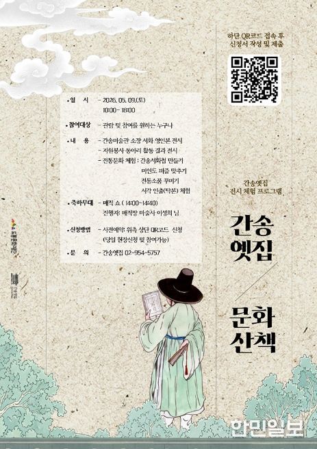 한민일보 서울포커스 김봉순 기자 | 서울 도봉구 도봉문화재단 간송옛집이 오는 5월 9일 오전 10시부터 간송옛집에서 전시·체험·공연이 결합한 참여형 문화프로그램 ‘간송옛집 26년도 문화산책’을 진행한다.