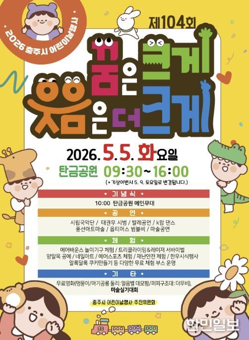 한민일보 서울포커스 김다남 기자 | 충주시는 오는 5월 5일 오전 9시 30분부터 탄금공원에서 ‘제104회 어린이날’을 기념하는 ‘2026 어린이날 행사’를 개최한다고 밝혔다.