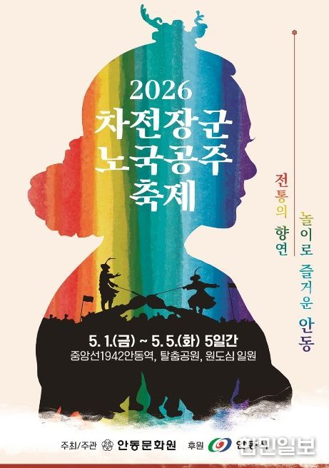 한민일보 서울포커스 김봉순 기자 | 대한민국 민속문화의 정수를 만끽할 수 있는 안동의 대표 봄 축제, ‘2026 차전장군 노국공주 축제’가 오는 5월 1일부터 5일까지 5일간 중앙선1942안동역(대동마당), 탈춤공원, 벚꽃길(길마당) 및 원도심 일원에서 펼쳐진다.