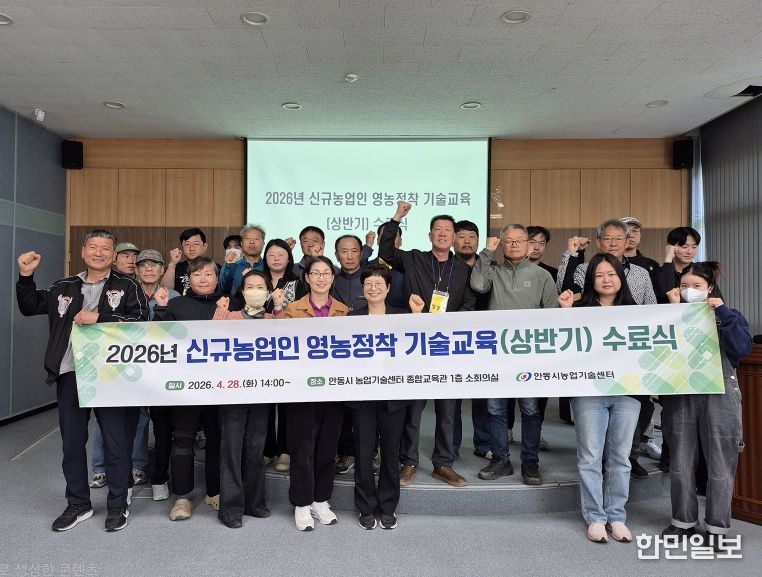 한민일보 서울포커스 김봉순 기자 | 안동시농업기술센터는 지난 28일 ‘2026년도 신규농업인 영농정착 기술교육(상반기)’ 수료식을 개최하고 교육과정을 성공적으로 마무리했다고 밝혔다.
