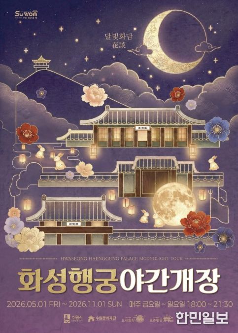 한민일보 서울포커스 진광성 기자 | 화성행궁 야간개장 ‘달빛화담, 花談’이 5월 1일 시작된다. 11월 1일까지 매주 금·토·일요일에는 저녁 9시 30분까지 화성행궁을 관람할 수 있다.