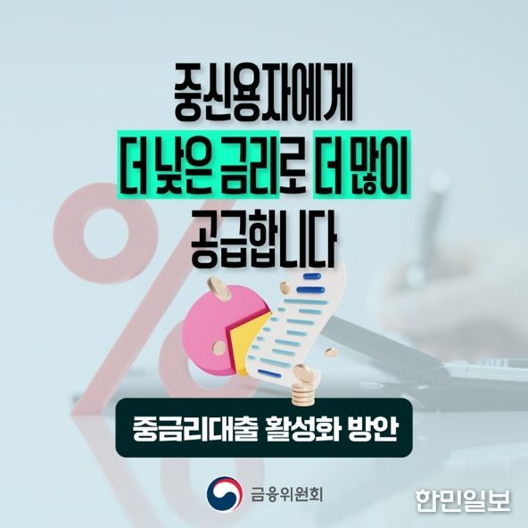 · 제2금융권의 민간중금리대출을 중금리대출 1·2로 분리, 더 낮은 금리의 중금리대출에 추가 인센티브를 부여하여 금융기관의 자발적 금리 인하를 유도합니다.