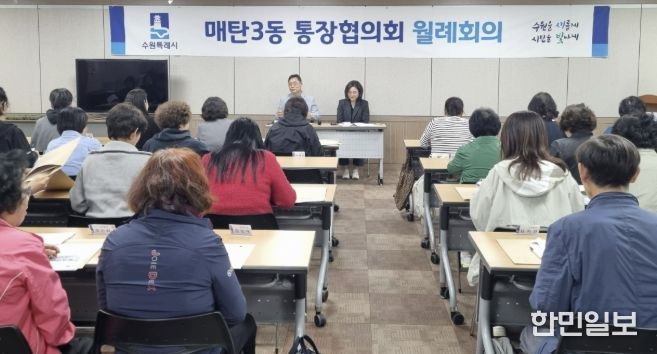 한민일보 서울포커스 진광성 기자 | 수원시 영통구 매탄3동은 지난 28일 시정 및 동정 소식 공유를 위해 4월 2차 통장협의회 월례회의를 개최했다.