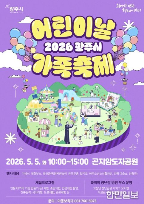 시 관계자는 “어린이날 가족축제가 아이들에게 꿈과 희망을 키우는 특별한 하루가 되고 가족 모두에게 소중한 추억이 되길 바란다”며 “앞으로도 어린이들이 건강하고 행복하게 성장할 수 있는 환경을 조성해 아동친화도시 광주시를 만들어 나가겠다”고 말했다.