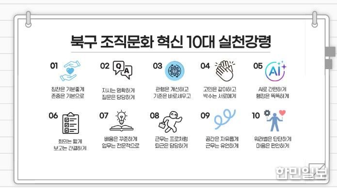한편, 오는 30일 오후 3시 북구청 3층 회의실에서는 ‘조직문화 혁신을 위한 10대 실천 강령 선언식’이 개최된다.