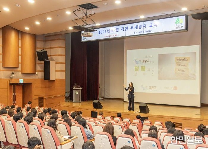 한민일보 서울포커스 김성혜 기자 | 인천광역시 계양구가 청렴한 공직문화 조성을 위해 28일 구청 대강당에서 ‘2026년 전 직원 부패방지교육’을 실시했다.