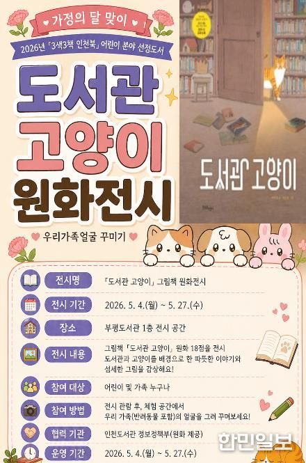 한민일보 서울포커스 유창렬 기자 | 인천광역시교육청부평도서관은 5월 4일부터 27일까지 가족이 함께 즐길 수 있는 '도서관 고양이' 그림책 원화 전시를 운영한다.