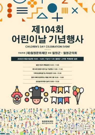 한민일보 서울포커스 진광성 기자 | (재)철원문화재단은 오는 5월 5일 어린이날을 맞아 고석정 일원에서 ‘제104회 어린이날 기념행사’를 개최한다고 밝혔다.
