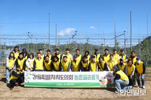 한민일보 서울포커스 곽중희 기자 | 강원특별자치도의회는 4월 29일(수) 화천군 사내면 일원 사과 농가를 찾아‘강원특별자치도의회 농촌일손돕기 봉사활동’을 실시했다.